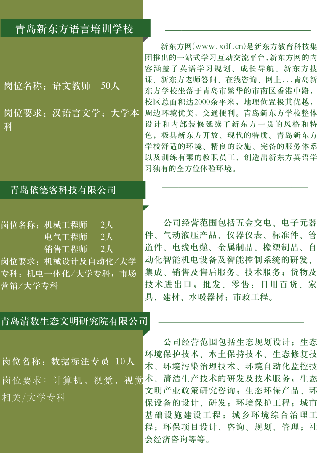 青岛新闻网9月17日讯 近期精选招聘岗位推荐如下: