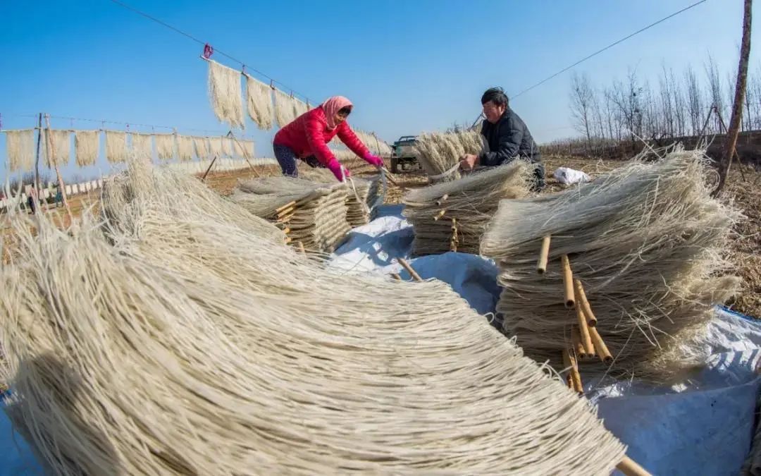 作为“胶州市非物质文化遗产”,大相家粉条拥有四百年的历史,近三十道纯手工制作工序,使粉条线条均匀、久沸不腻、光滑柔韧、晶莹剔透、口感爽嫩。