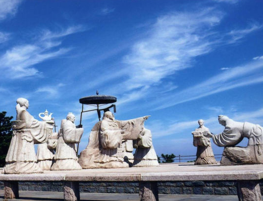 在琅琊台风景区追忆秦始皇派徐福东渡的历史故事。