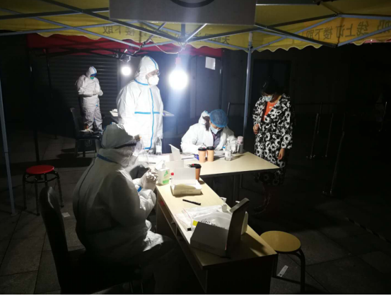 早6点,公司第一批支援人员在合肥路居然之家广场到位。维持现场秩序、引导排队候检、登记居民信息……连续的忙碌一直持续至10月15日深夜。