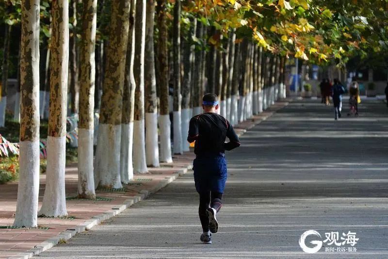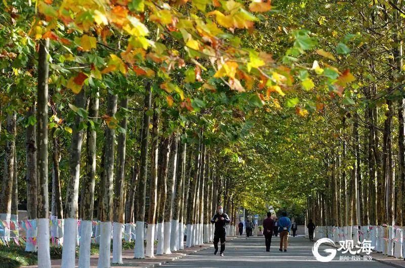 接连几次降温,岛城已披上秋衣。以“原生态植物林地”为主题的太平角公园,更是美不胜收。碧云天、黄叶地、秋色连波,红色的屋顶与黄绿相间的植被相互掩映,是秋季不可多得的美景。公园里主干道两侧种满了梧桐树,叶子早已变黄,不少叶子已经凋落,远远望去仿佛一条金色的时空隧道。