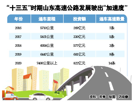 从“量”的飞跃到“质”的提升,“十三五”期间,山东高速公路建设与发展一年一个变化。面向未来,山东高速公路建设的大发展仍将继续。根据规划,到2022年,我省将以提升改造为重点,统筹新建项目与改扩建工程,加快优化布局、完善网络,解决主要通道及跨黄河路段拥堵问题,全省高速公路通车里程达到8000公里。到2025年,加快实施高速公路连接线项目,大力提升网络连接效能和通达水平,完善与普通干线公路和城市快速路、主干路的有效衔接。