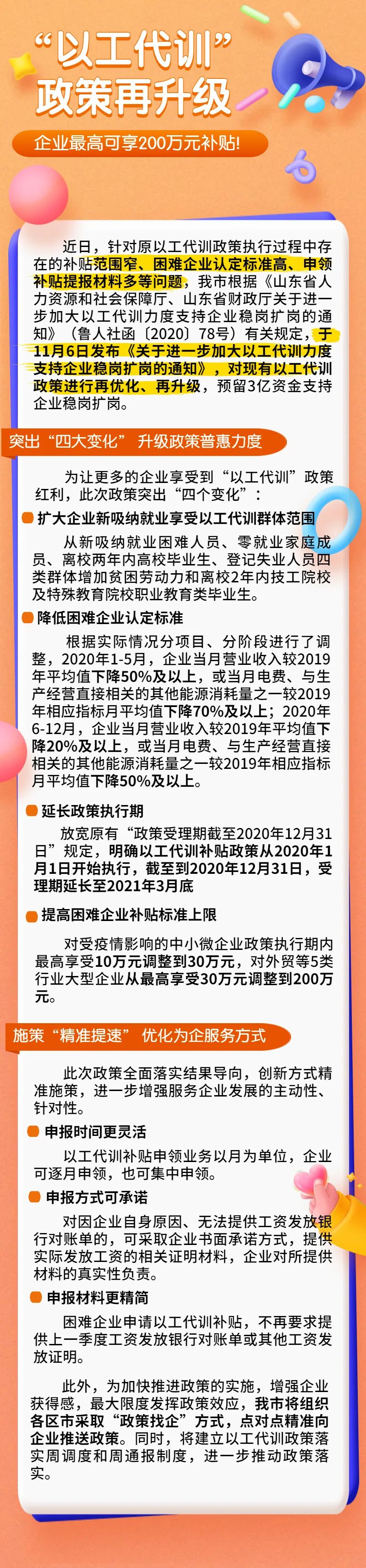 今年以来,为加大对中小微企业、困难企业、受疫情影响较大的行业企业稳岗扩岗支持,我市出台实施企业以工代训政策,按吸纳就业以工代训人数和困难企业以工代训人数给予符合条件企业职业培训补贴。目前,共拨付补贴资金1000万,惠及企业3900余户、职工1万余人次。