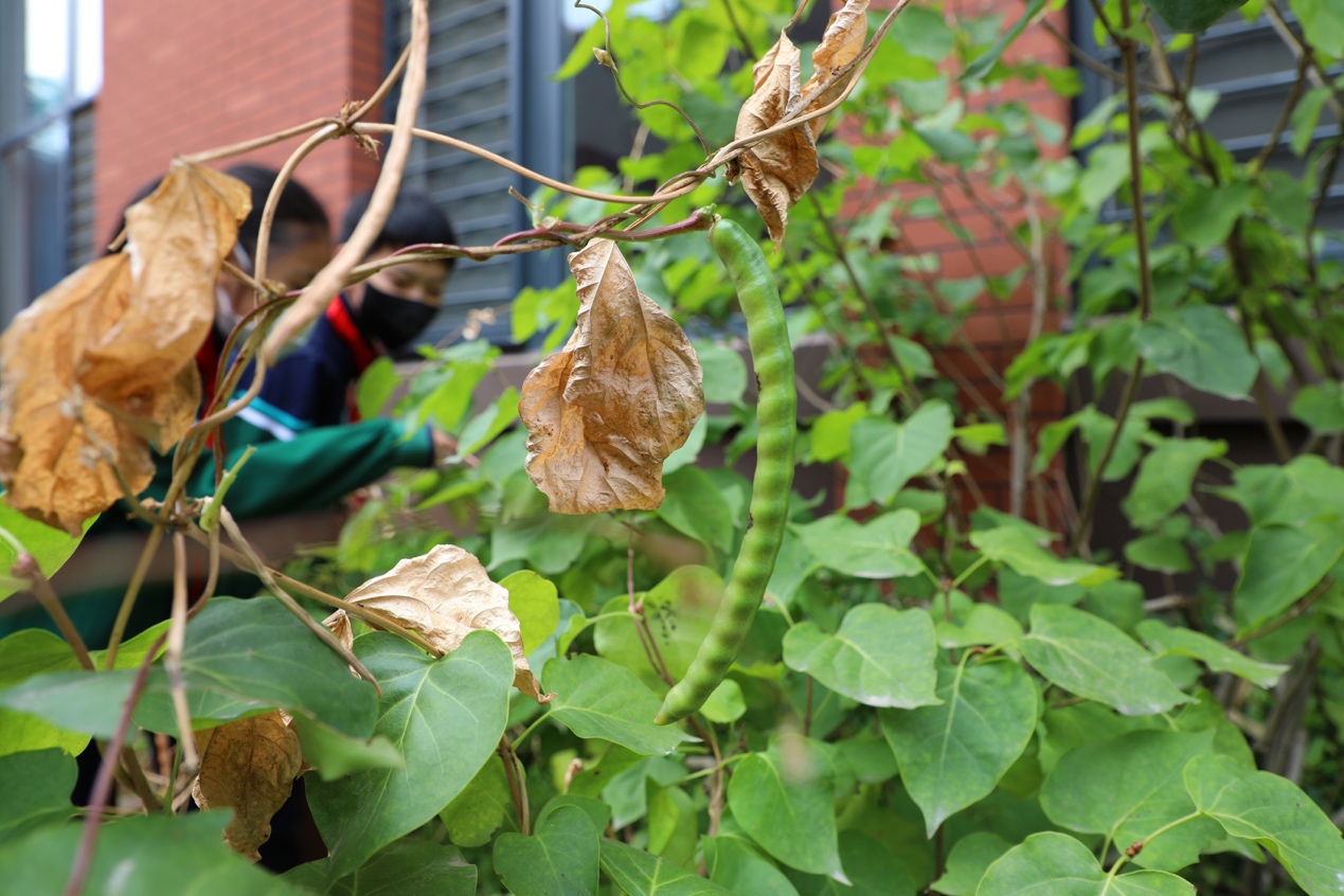 海信学校生态园,五年级(1)班的学生正在观察科学课的劳动成果,种瓜得瓜,种豆得豆,同学们浇水施肥,乐此不疲。