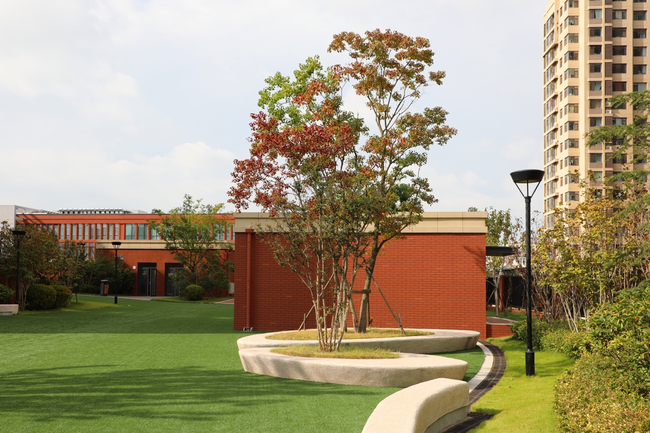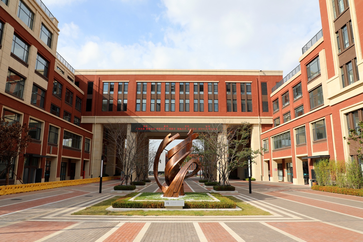 海信学校中央广场,校园雕塑“信”像是一颗动感飘逸、蓬勃生长的“成长树”,巍然耸立。