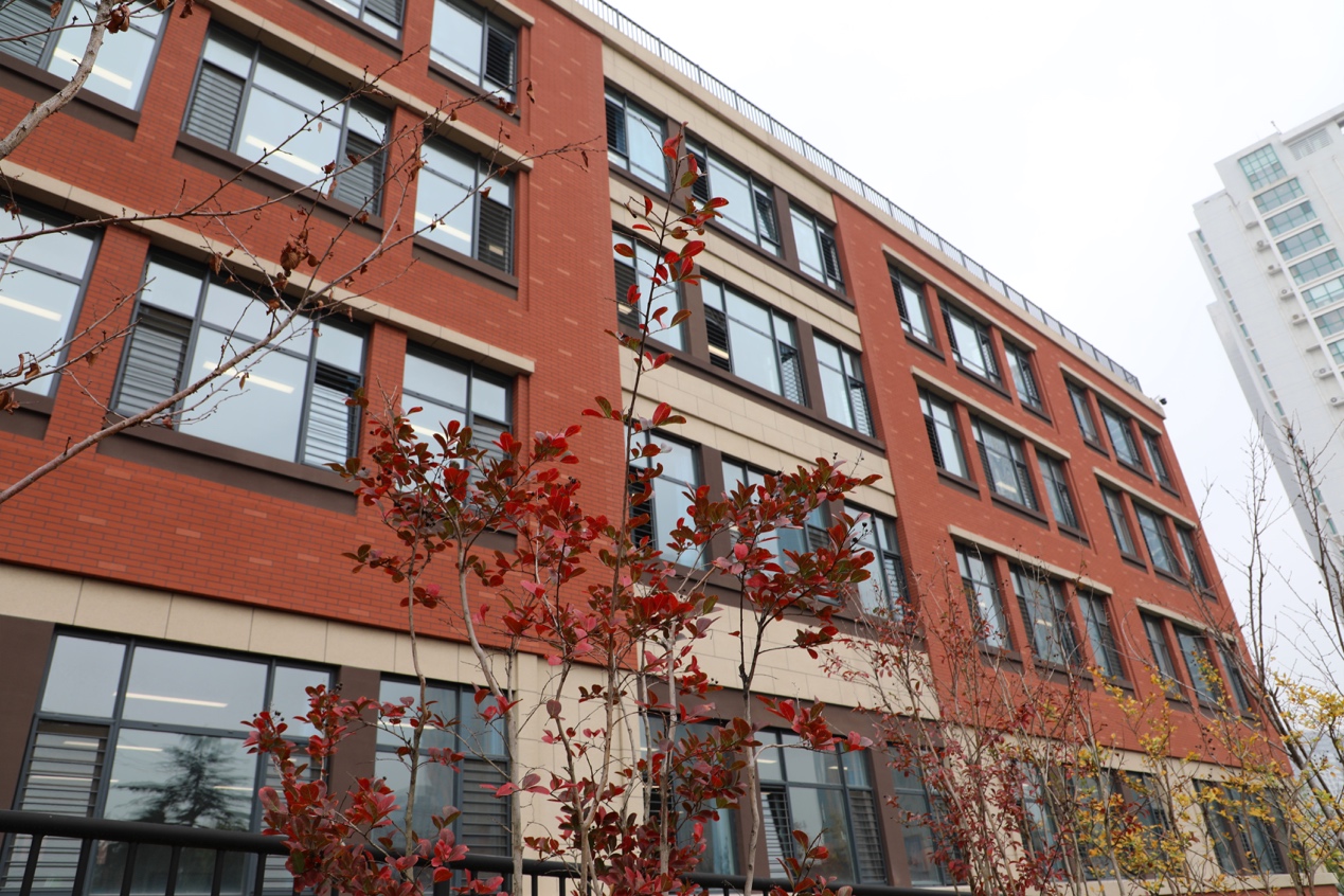 海信学校教学楼后,枫叶红似火,红砖映彩霞,比比是我的“脸红”还是你的“叶红”?好吧,叶,你赢了!