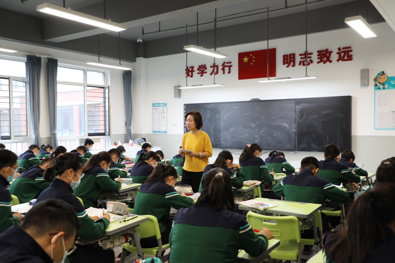 海信学校八年级(1)班,麦田的守望者——班主任刘红英老师带领同学们早读,这一抹“金色”和“海信绿”辛勤耕耘,必定能结出“红的果”。