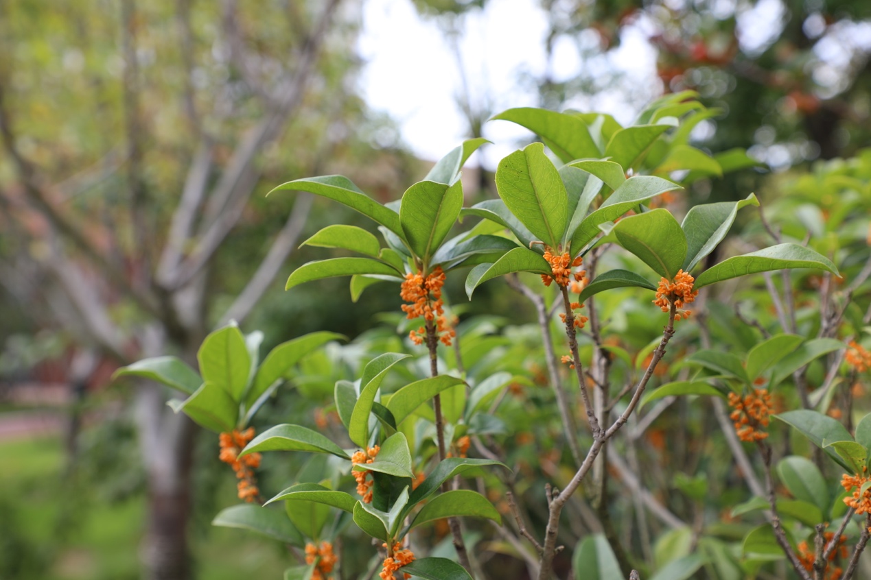 海信学校休息区,枝繁叶茂,丹桂飘香,鼻尖细嗅,指间弥存,你闻闻“我”香不香?