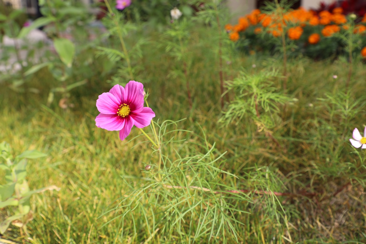 海信学校花坛里,一株向阳而生的花,朝着太阳,坚定信念,努力地开出灿烂的花。