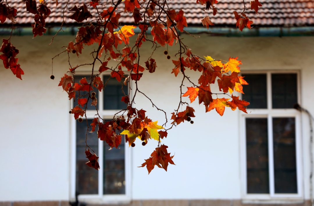 秋日宜凭栏心绪端正好把这红瓦黄墙融入一场秋梦