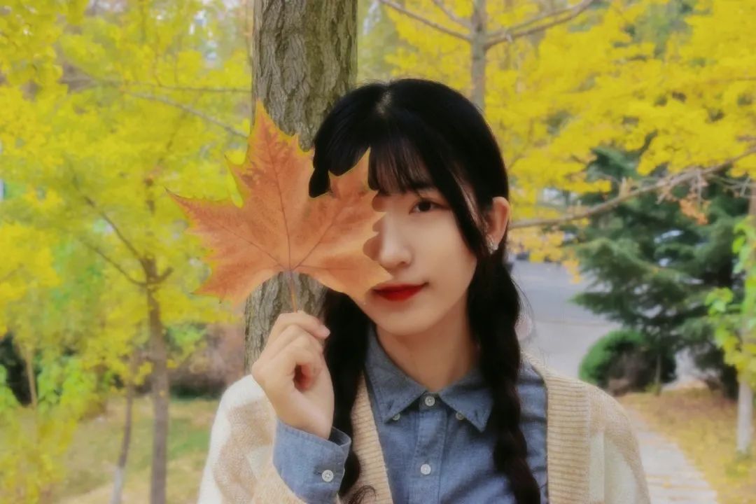 黄叶纷飞落入你眼波流转秋波荡漾不及你回眸一笑