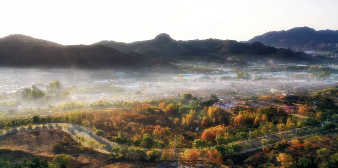 将这山水秋色挥笔胸中点墨 秋韵动人惹众人停驻醺醺然如酣梦刚醒暖阳秋风黄叶红果海大园不语似与秋日共沉醉