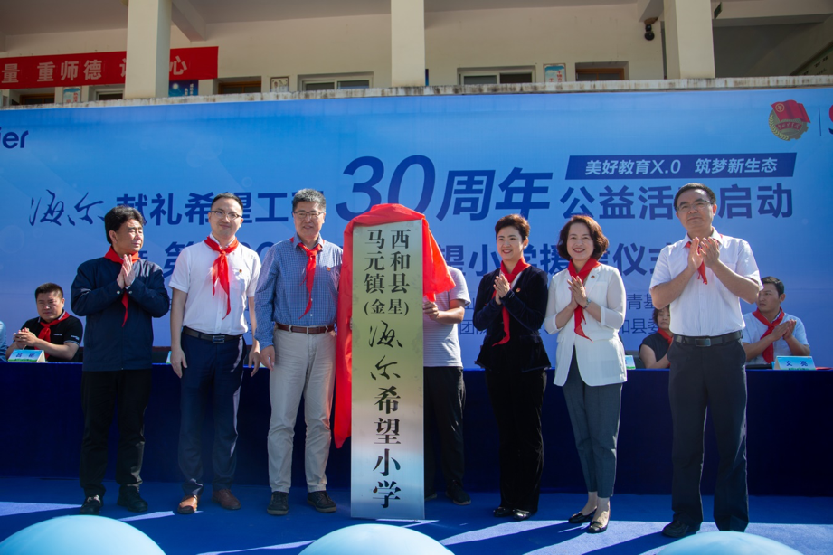 在公益助学方面,海尔每年援建20所希望小学。截至目前,海尔已累计投入超过1.1亿元人民币,共计援建325所希望小学和1所希望中学,覆盖全国26个省、市、自治区,帮助数以万计的儿童就学,成为希望工程中援建希望小学最多的企业。