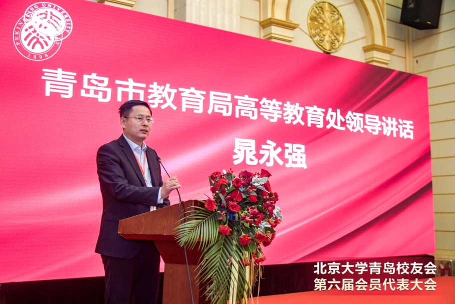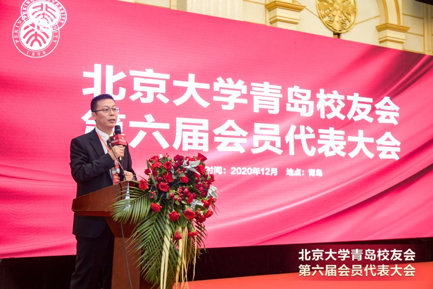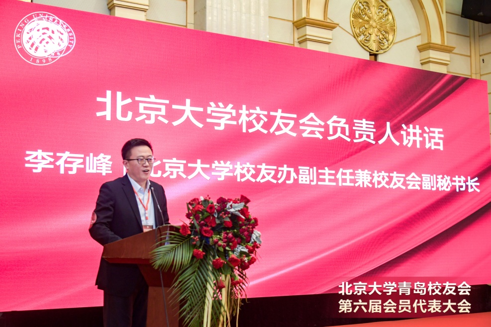 北京大学校友办副主任兼校友会副秘书长李存峰,向北京大学青岛校友会致以母校的问候,并向各位校友介绍了北京大学今年以来在学术发展、师资队伍、国际交流与合作等领域取得的发展成果。以及北京大学校友会及各地校友会在今年的全球抗疫中所作出的贡献。他 希望新一届理事会总结成绩,深入推进校友会的有序发展,从社会组织层面,为地方经济发展做出北大人应有的贡献。