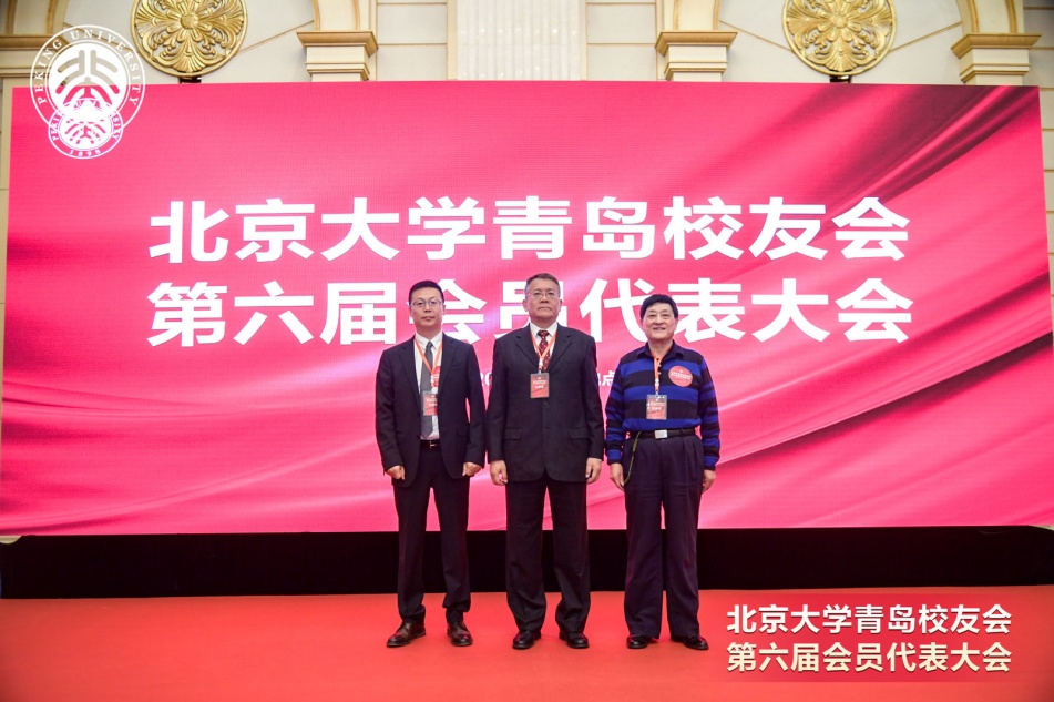 (北京大学青岛校友会第五届执行会长兼秘书长余勇、第六届校友会会长袁东亮、第六届理事会副会长兼秘书长张吉成合影留念 )