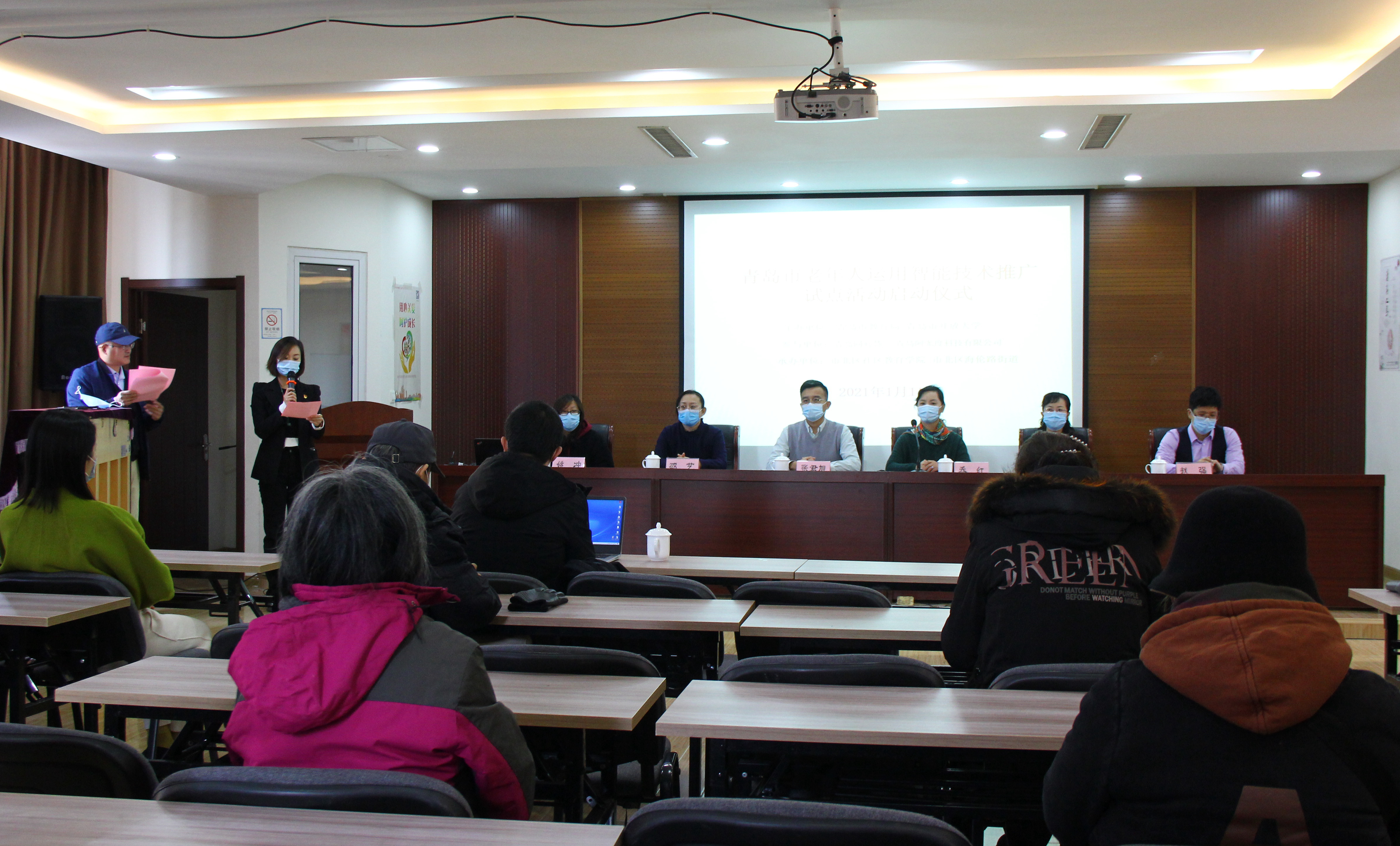 1月11日上午,市南区网络代表人士志愿服务队走进海伦路街道,助力开展青岛市老年人运用智能技术推广试点启动活动。