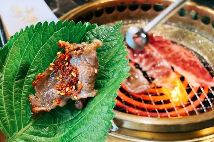 菜叶包肉,泡菜加蒜,大口塞入嘴中