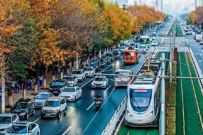 城市发展日新月异。近几年,青岛市城阳区率先推出了一种新的交通工具——观光交通相结合的有轨电车。
