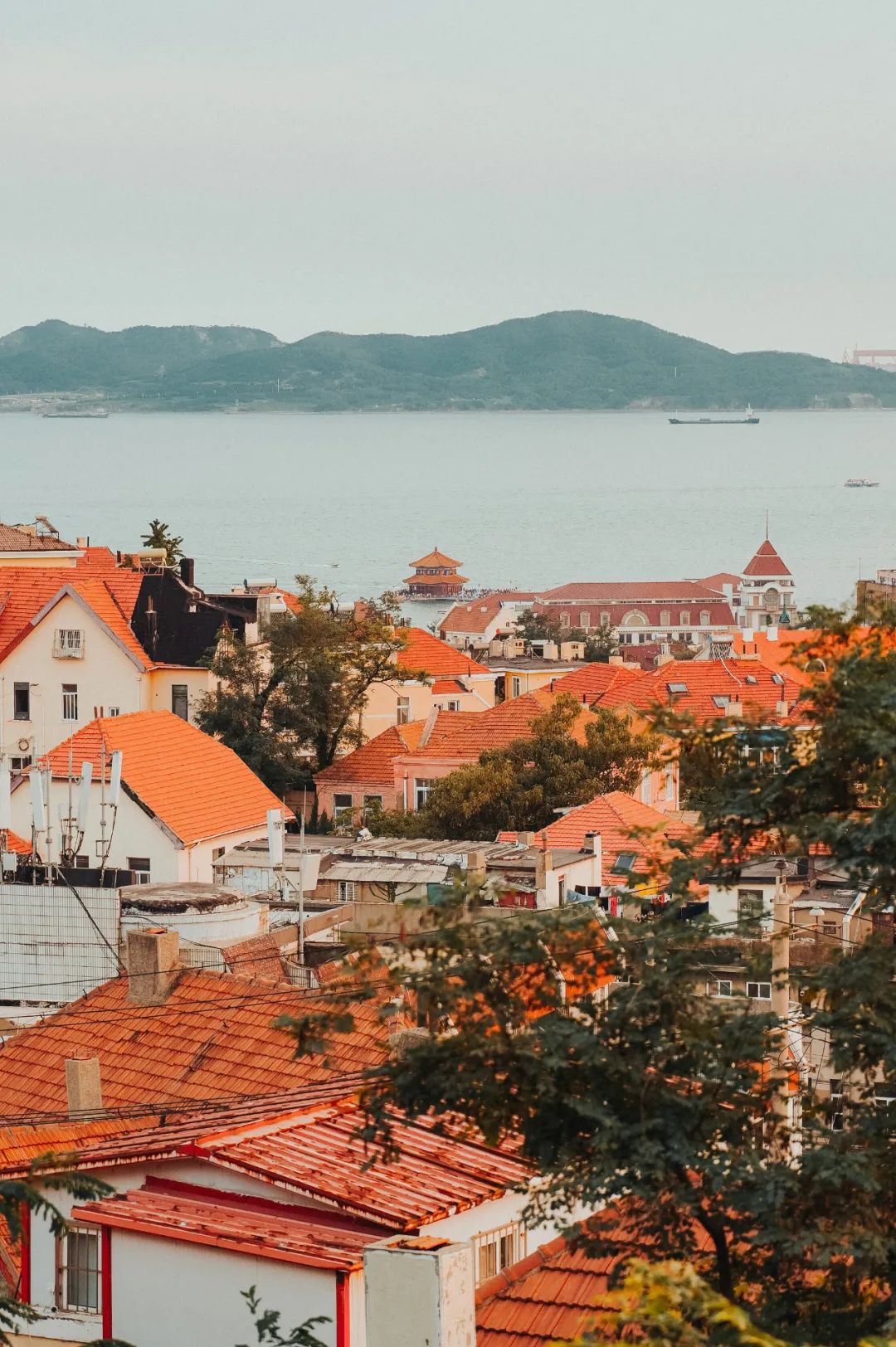 叮当车与青岛的红瓦绿树、碧海蓝天交相辉映,仿佛让人穿越回旧时光,置身于老青岛的韵味中。