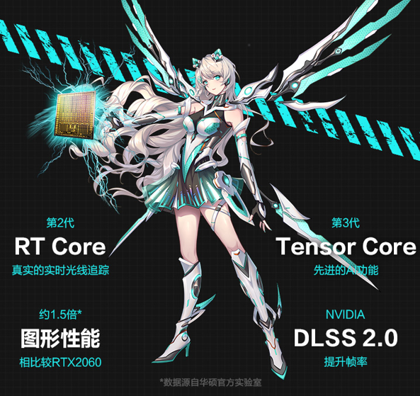 GeForce RTX™ 30系列笔记本电脑GPU拥有第2代RT Cores和第3代 Tensor Cores的全新NVIDIA Ampere架构,吞吐量更高,强者致胜!其中,第二代RT Core让实时光线追踪更为逼真、流畅,全新的第3代Tesor Core更是让AI充分发挥游戏大作的华丽画面,加上NVIDIA特有的DLSS2.0,这是由Tensor Core提供算力支持的一项突破性AI渲染技术,可让笔记本电脑在同等功耗下,展现出更强大的性能,让玩家恣意遨游任意3A大作。