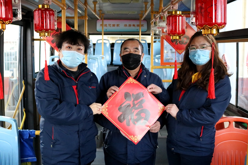 带着这样的想法,苏彦会在工作中干劲更足了。小年到来前夕,苏彦会将车厢装扮一新,打造“迎新年”主题公交,在车内悬挂彩色灯笼,布置春节主题图片和传统民俗知识小贴士,营造喜庆祥和的节日氛围。“我特意在车内设置了一个留言区,与乘客们分享我留青过年的感受,希望能带动更多人为疫情防控贡献力量!”苏彦会说,在此基础上,他还准备了“福”字及灯笼挂饰,免费送给留青过年的乘客。“我想将自己和家人感受到的温暖,回馈给更多人。今年虽然不能回家过年,但我会用真情服务与广大乘客一路相伴。”