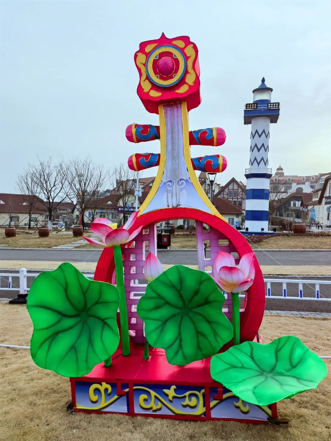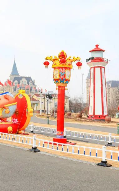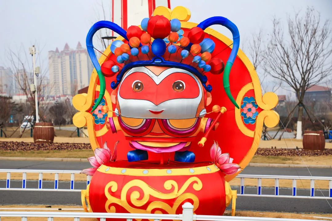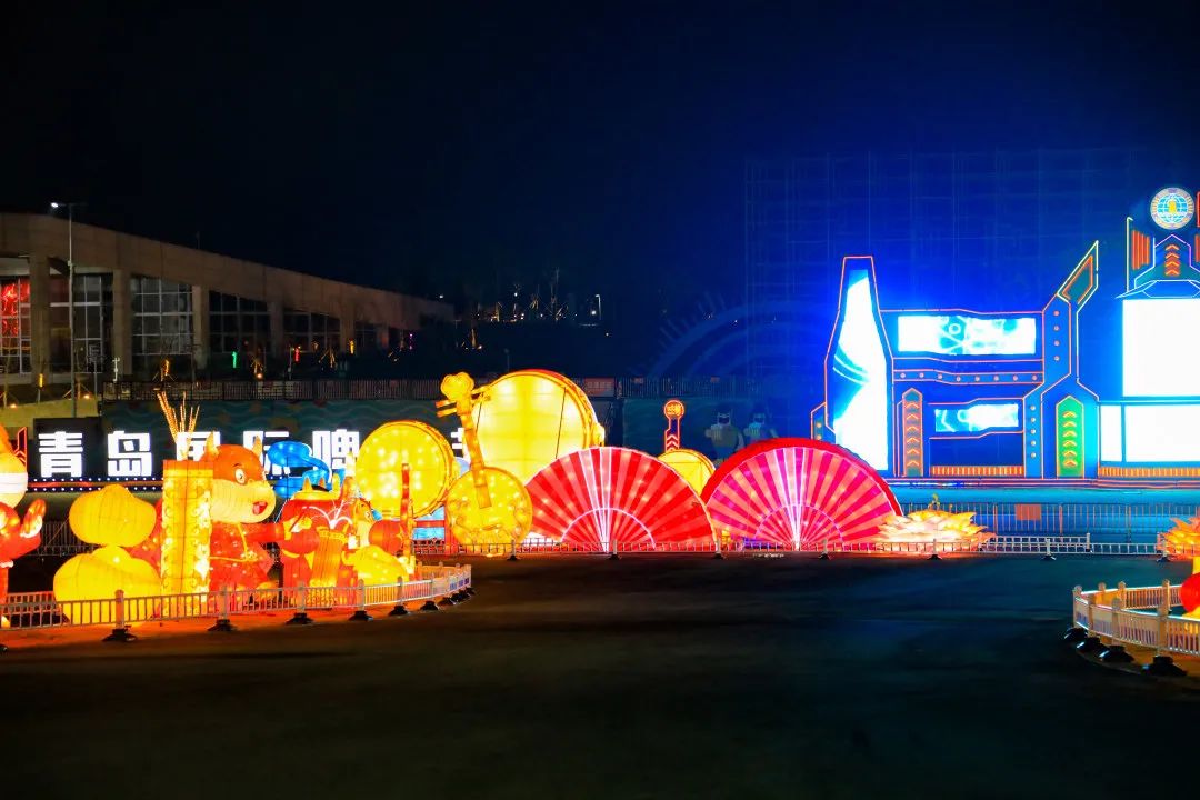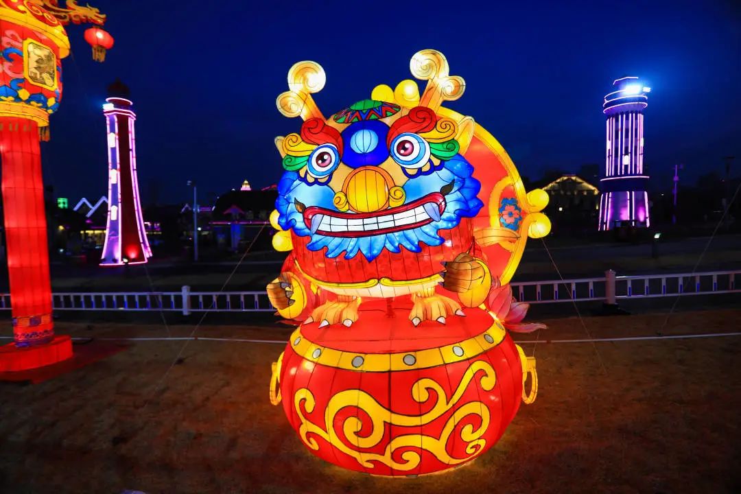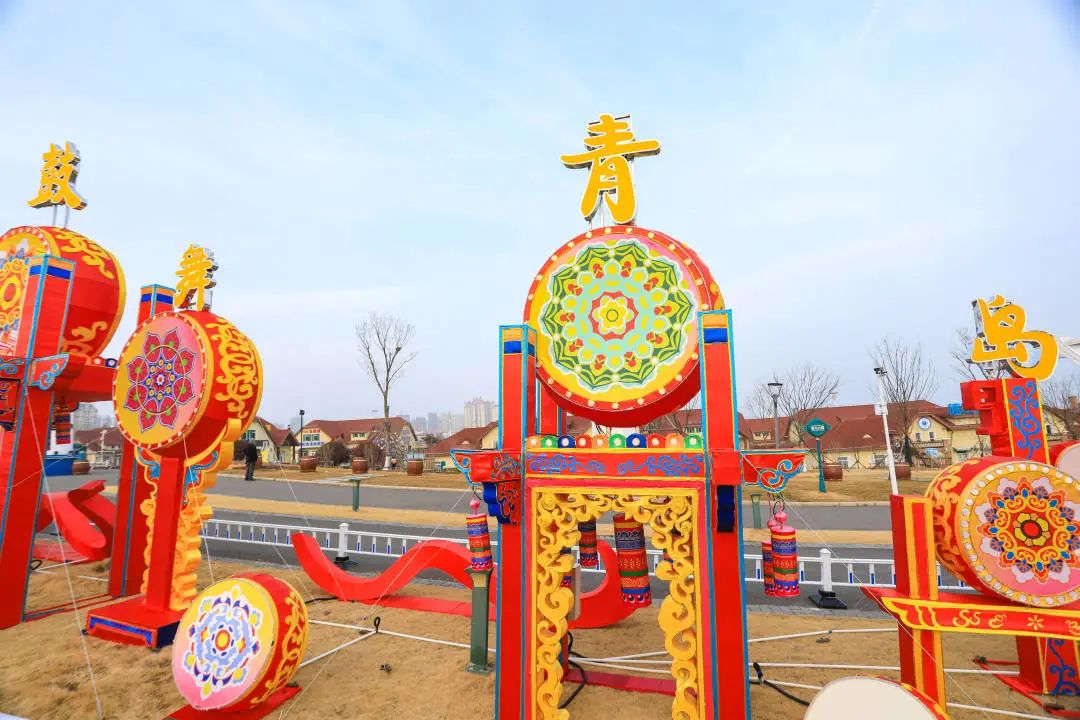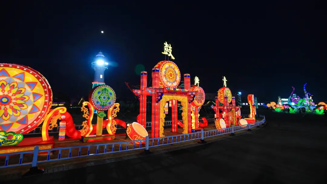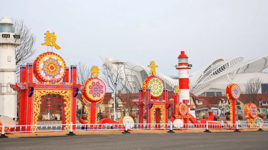 “鼓舞青岛”为花鼓造型灯组,