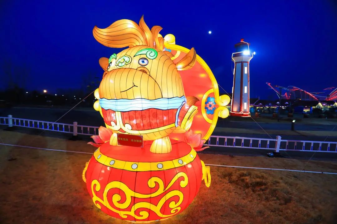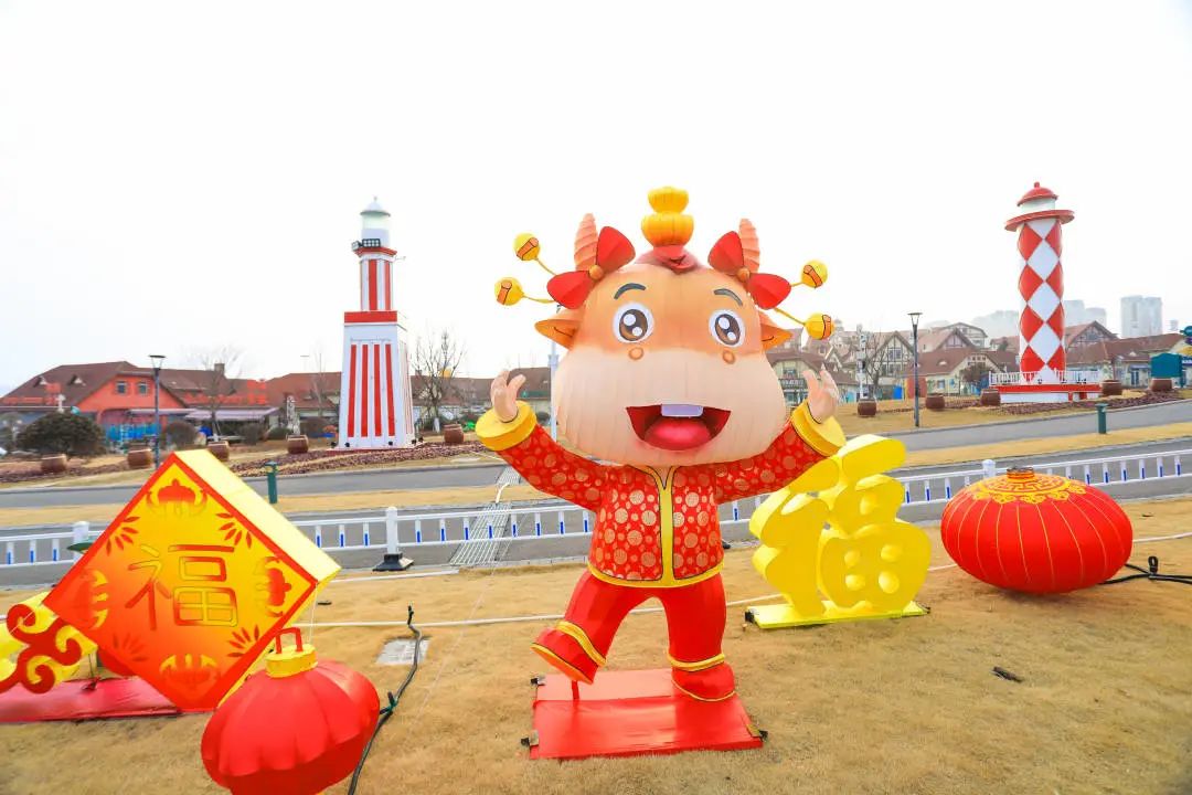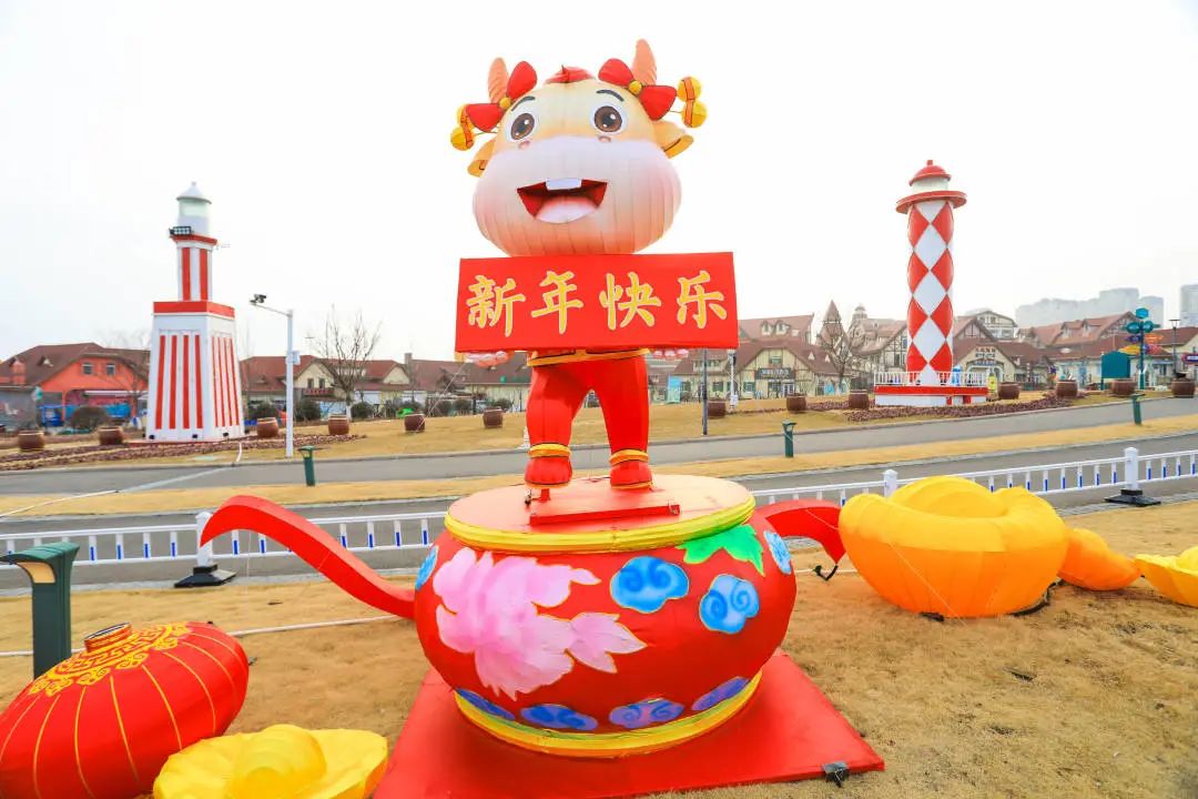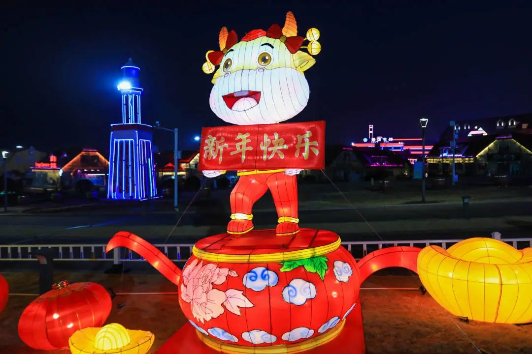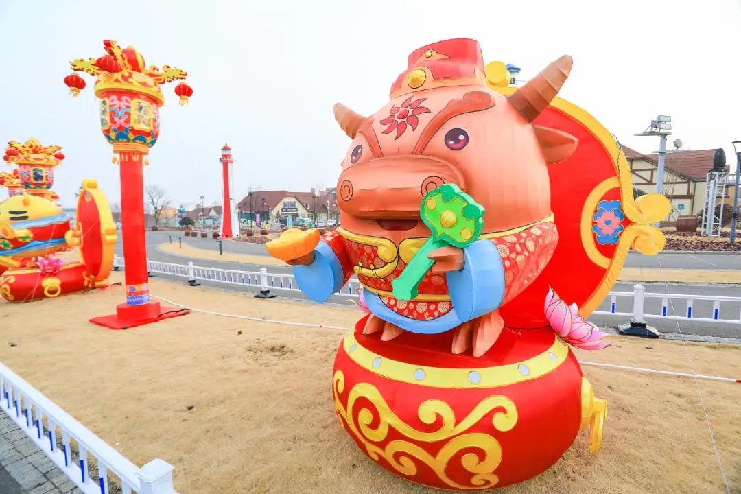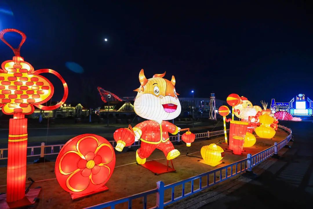 “金牛送福”为生肖牛造型灯组,