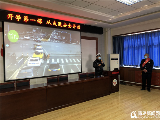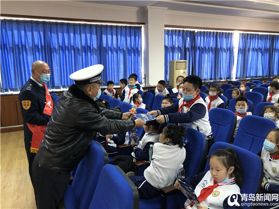 高健警官向师生们发放“知危险会避险安全文明出行”交通安全公益宣讲手册之后,讲解了在上学、放学途中可能遇到的一些交通安全状况和在过马路时要注意观察来往车辆和骑自行车时不在公路上嬉戏打闹等应掌握的一些交通安全常识。同时,还将发生在身边的一些交通事故典型案例与行走交通安全常识、乘车安全常识等注意事项结合起来,倡导队员们树立“文明交通从小做起、从我做起、从现在做起”的理念。随后,青岛城运控股公交集团隧道巴士第八分公司“暖行•心益”团队志愿者陈建伟就小学生乘坐公交车时应该规避的危险举动,以及如何避免乘车过程中的安全隐患做了讲解。