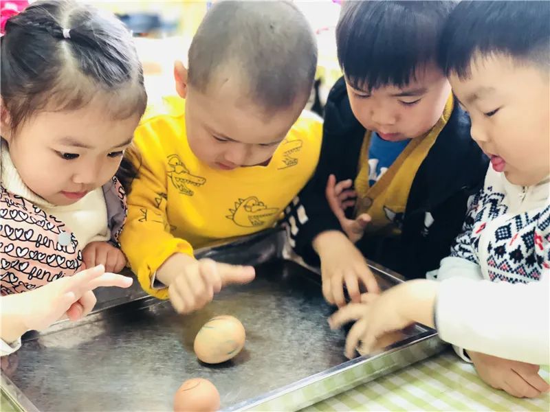清明节转蛋,寓意着将疾病都转走,人们能健康地生活。小朋友们纷纷用手拨弄鸡蛋让其旋转起来。圆溜溜的鸡蛋转呀转,天生爱探索、好奇心强的宝贝们让转蛋游戏变得自主且充满快乐。咦,鸡蛋时而旋转地快,时而却又旋转的慢……快和我们一起去揭晓鸡蛋旋转的秘密吧!