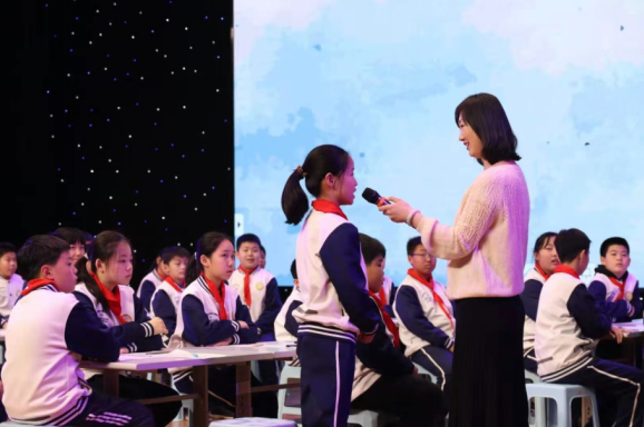 青岛北仲路第一小学围绕阅读课程、课堂、社团、学校工作等方面进行展示和交流,通过“快哉吟诵社”诵读、水浒绰号考级、“阅微书社”快乐读写以及五年级的“整本书阅读导读课”、经典阅读经验介绍,展现了学生、教师在学校完善机制、长效推动经典阅读中取得的成长。
