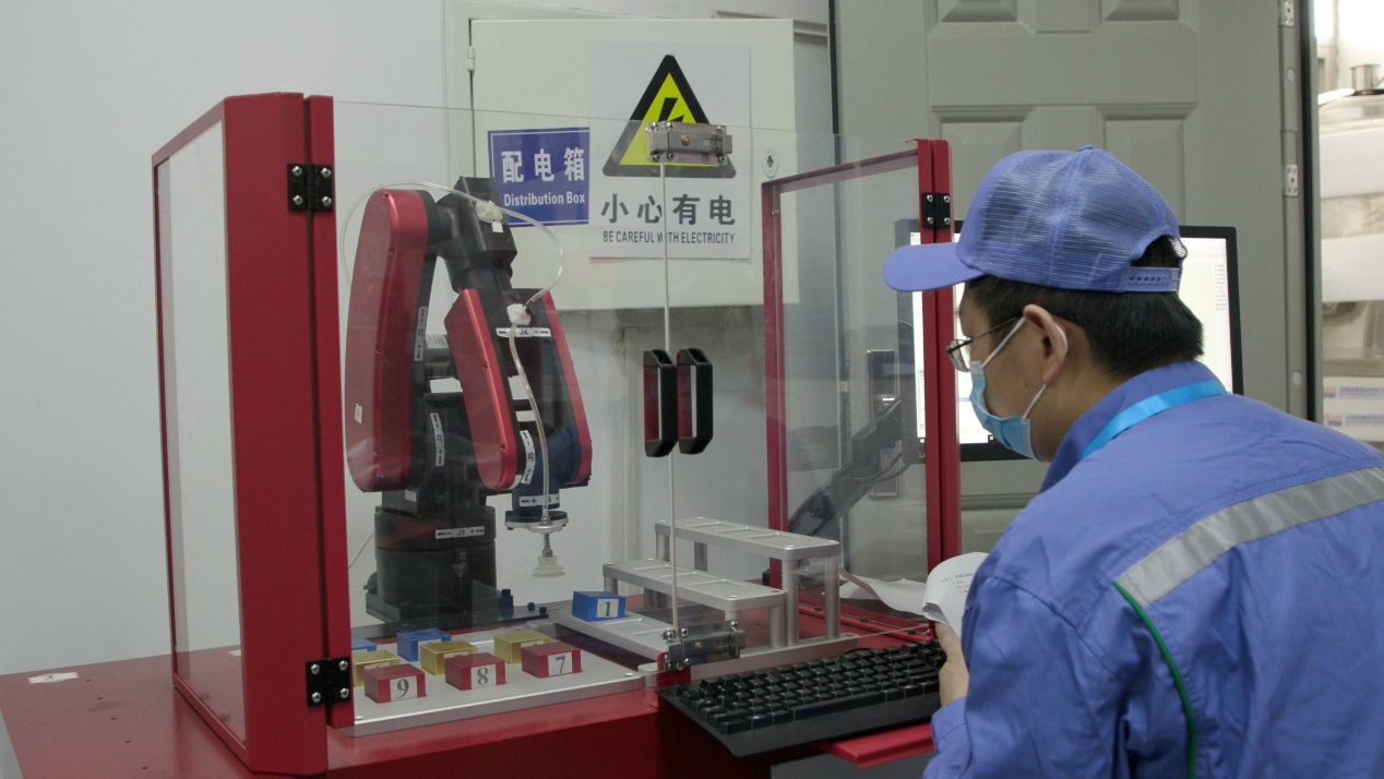 如何通过编程,控制机器手臂将产品模型摆放到指定位置,是青啤赛区电工决赛的比赛项目。“在青啤当‘电工’,和传统意义上中的接个电可不一样,不仅要懂PLC系统工程操作,还要会机器人编程设置,准确的说应该是电气化工程师。” 在青岛啤酒灯塔工厂负责智能装备 维修的“电工”张云昌告诉记者,“现在工厂都是智能化设备,技能大赛系统性学习和比赛,能更好的与时俱进, 让技能得到系统的磨练和升华,这对自己来说是一笔不小的财富。”