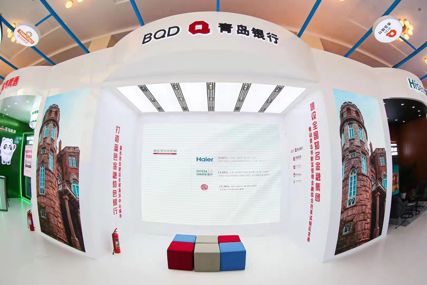 “我们希望打造开放、融合、美好的金融品牌特色,就像这次场馆布置,我们打破了传统封闭柜台的模式,用极简的开放场景,让大家体验科技金融服务就在您身边。”青岛银行相关工作人员介绍,青岛银行着力打造蓝色金融特色银行,与世界银行携手开展蓝色债券业务,所以在这次布展中,避免使用塑料材质物料,从点滴处向大众传导减少塑料垃圾污染,保护海洋环境等品牌理念。