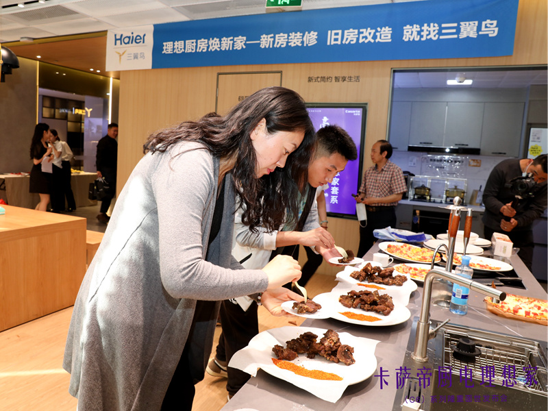 现场,海尔智家厨电产业营销总监王雁北进行了卡萨帝厨电C6理想家套系发布。卡萨帝再度以高端产品、智慧厨房全场景解决方案及全流程美食生态,颠覆“高端厨房”理念。其首创的五环同步火燃气灶,可实现5.23T大火爆炒,保证一锅同温、均匀受热,受热面积增加40%,精准控温1℃;首创油烟自管理的大宅油烟机,可自动感知烟量调节吸力大小,油烟逃逸率接近于0;其首创的超高温自熟名厨烤箱,是目前市面上唯一一款能达到300℃超高温的家用烤箱,同时可自动判断食物成熟度,让每个人都能成为“大厨”;首创多层同步蒸的名厨蒸箱,独立蒸汽系统让蒸汽直达每层,全腔匀温,不但能多层蒸还能实现多层烤;还有首创的食材级常温快速消杀,实现常温食材杀菌,保证入口食材健康。这些产品,汇集了114项全球专利,让用户把专业“大厨”带回家,在享用美食的同时,轻松体验烹饪的乐趣。