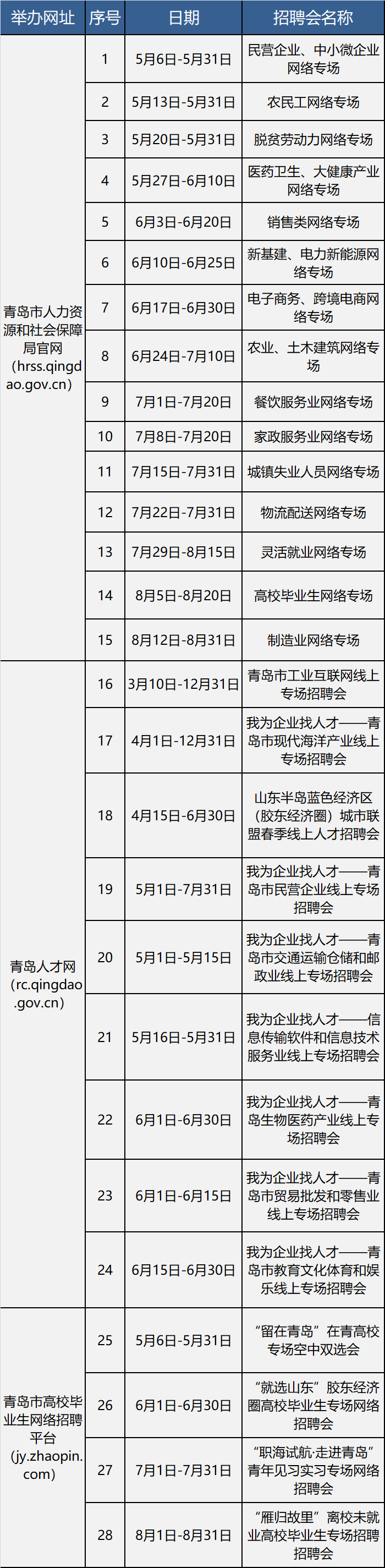 最后为大家奉上“百日千万网络招聘专项行动” 网络招聘会安排。