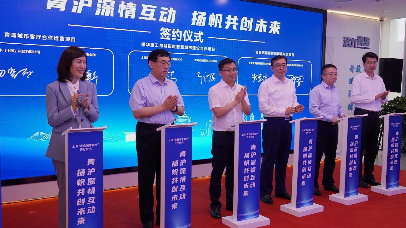 6月8日,在百余位代表的见证下,上海“青岛城市客厅”正式揭牌启用。75位上海市知名企业家和青岛企业家代表参加,现场签约项目12个,总投资额达到78亿元。活动现场还举行了卡奥斯专题推介以及青岛市城阳区“十四五”规划发布。