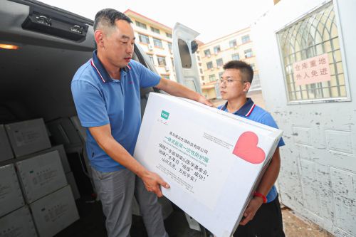 6月17日上午,在威达生物门口,工作人员将一箱箱贴着“山河无恙,万民平安”等标签的产品装满货车。这是由该企业向广东省钟南山医学基金会捐赠的300套“一体式医用一次性防护服”,用于广东抗击新冠肺炎疫情一线。“疫情牵动着全国人民的心,为助力广东早日战胜疫情,我们和广东省钟南山医学基金会取得了联系,无偿捐赠一批防护服。”青岛威达生物科技有限公司董事长王作松告诉记者。