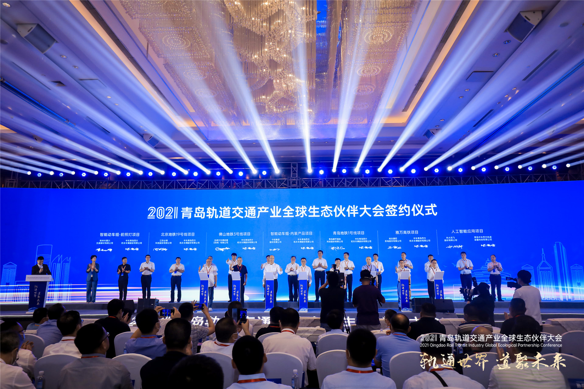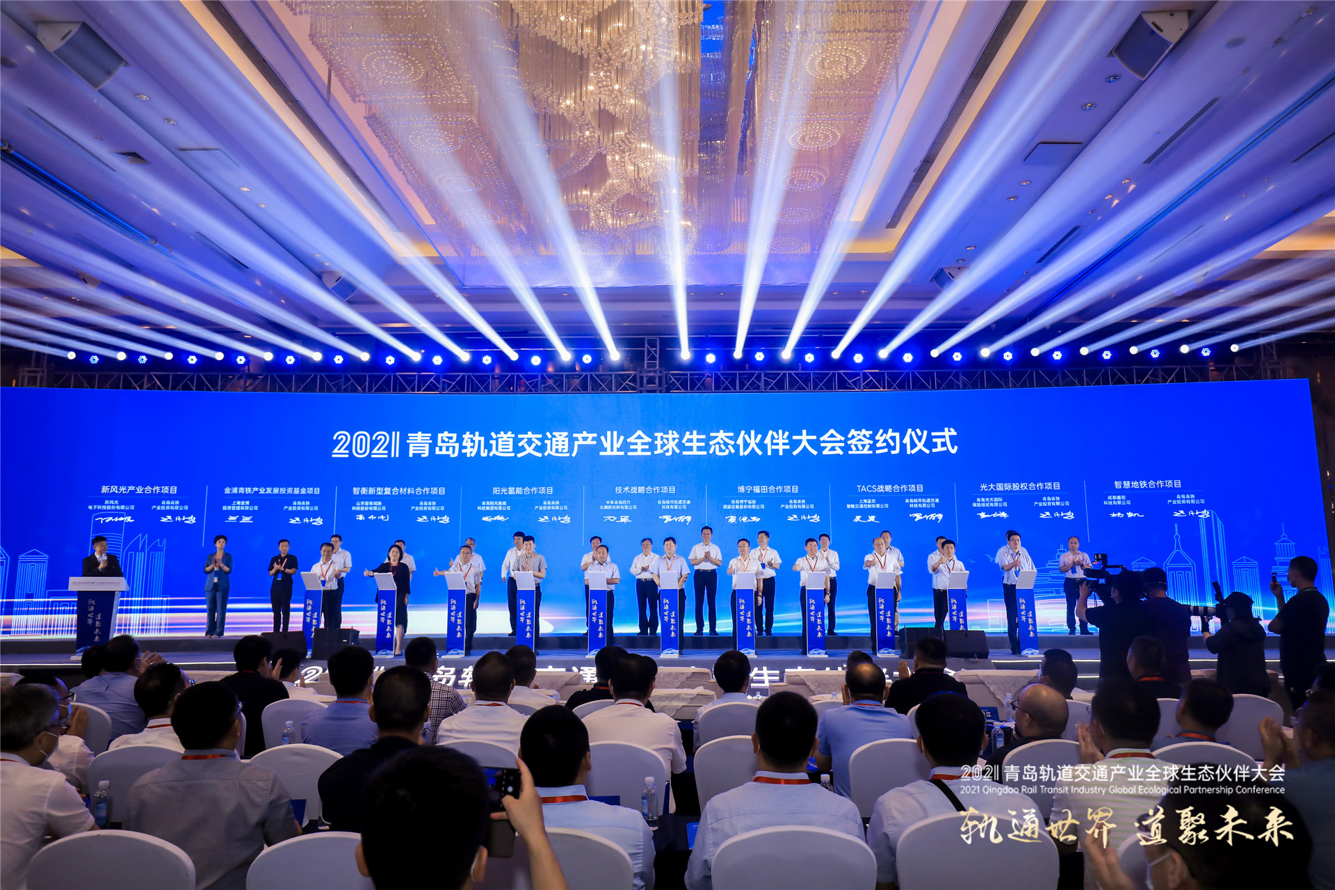 轨通世界,道聚未来。在这个暑气至浓,万物盛极的夏天,2021青岛轨道交通产业全球生态伙伴大会圆满落幕。构建全球轨道交通产业“生态圈”,扩大志同道合“朋友圈”,本次大会的举办,将助推青岛打造开放、合作、共生、共赢的多元生态体系,充分发挥青岛轨道交通产业巨大的生态凝聚力和市场爆发力,为助力青岛打造5000亿元级轨道交通产业集群展现示范区担当、贡献示范区力量。