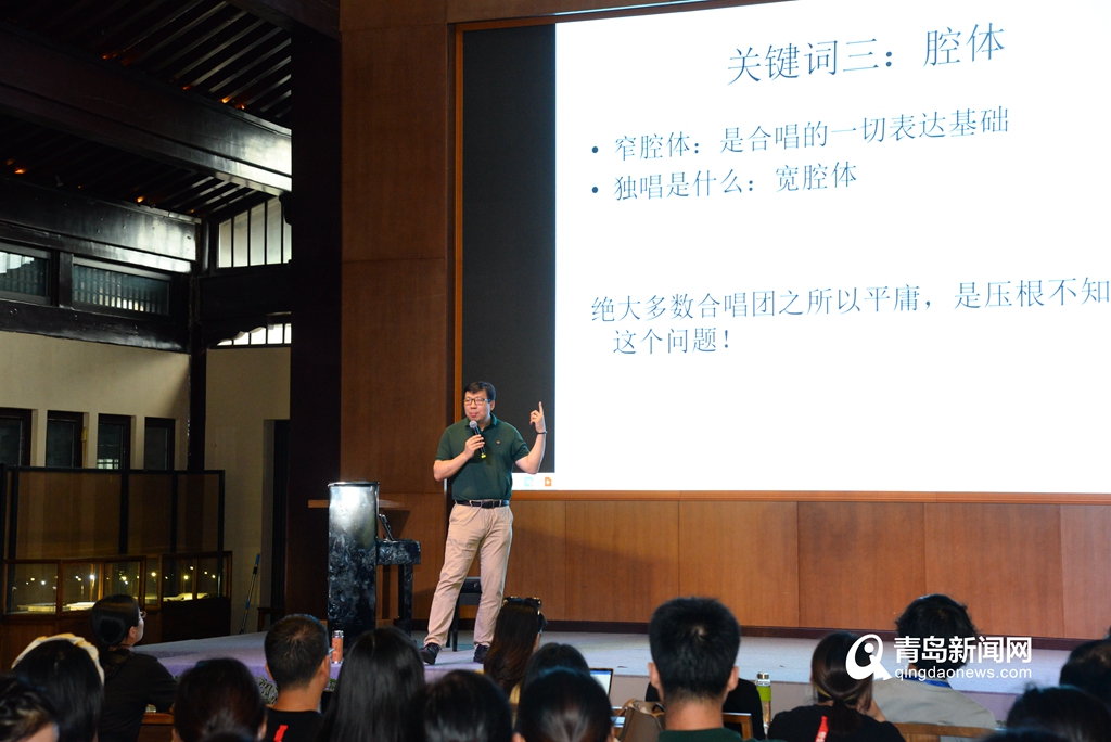 在3场合唱专家讲座上,吴可畏老师以《合唱音色以及点线训练基础》为题,围绕合唱容易出现的问题用通俗易懂的语言讲授专业问题;阎宝林老师以《让思维从平面走向立体的合唱形态》为题,从思维的角度深入浅出的阐释合唱;曹丁老师以《黄河大合唱》艺术作品风格解析进行现场授课。讲座现场座无虚席,听众们走近专家赏析合唱艺术,收获了合唱专业上新的启发,许多听众意犹未尽。