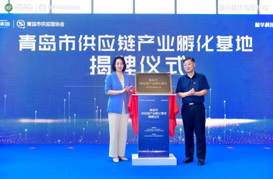 在与会领导的共同见证下,由青岛市商务局局长李苏满,平度市委副书记、市长赵兴绩共同上台,为青岛市供应链产业孵化基地正式揭牌。