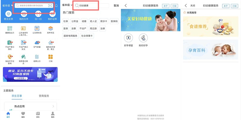 在“爱山东”APP,“妇幼健康服务”专区不但能为怀孕期、哺乳期女性提供专业性的建议,还包含食谱推荐、名医讲堂、孕期科普、育儿知识等服务,普及妇幼健康知识,传播健康理念,助力准妈妈迎接好“孕”。