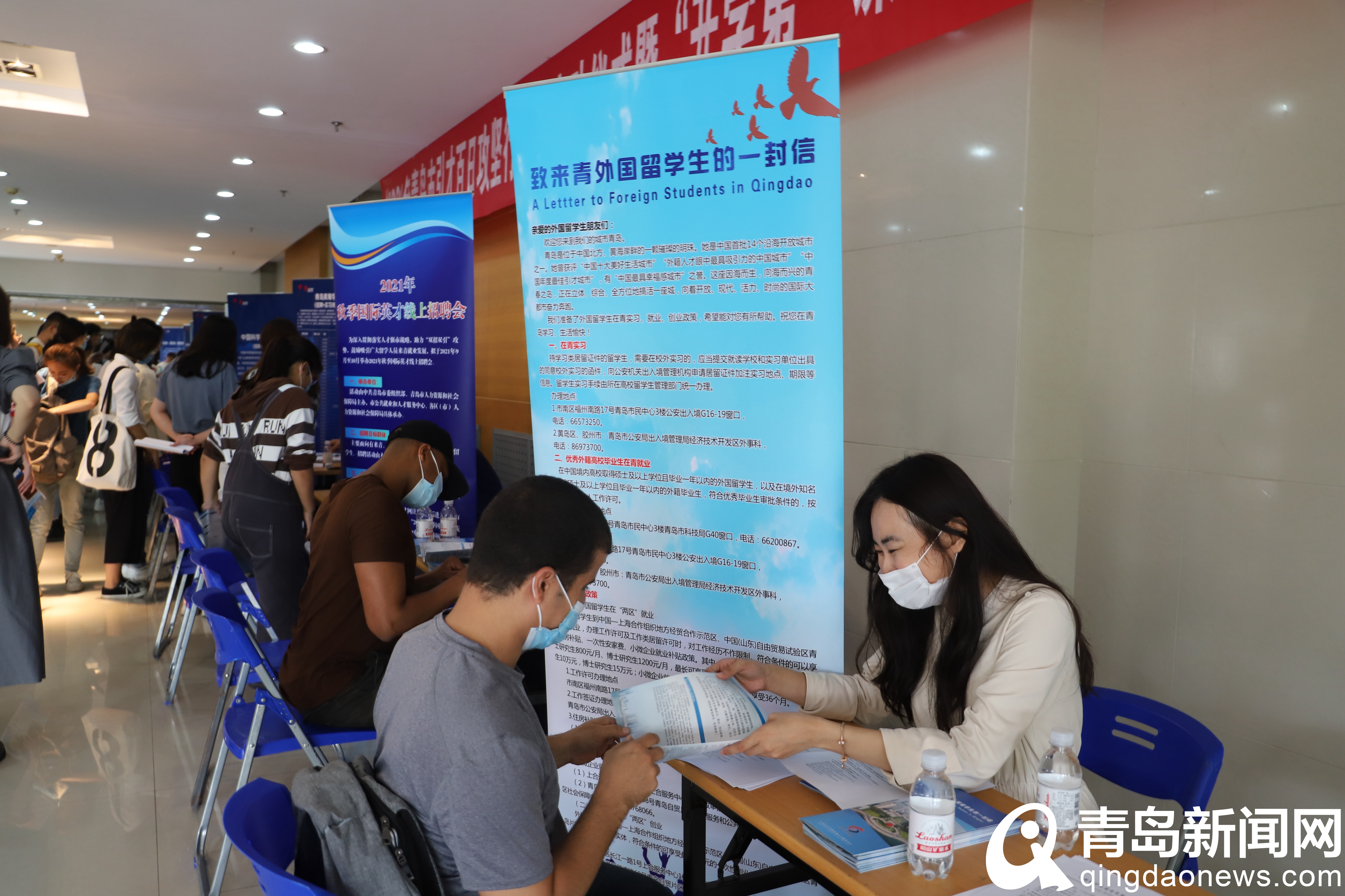 在现场,还同时举办了“外国留学生走近青岛”专项服务活动,一些外国留学生饶有兴趣的聆听了在青就业创业优惠政策,并就自己关心的问题展开询问。