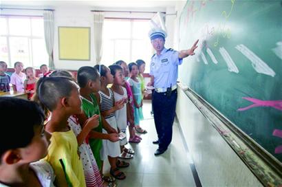 李涌给小朋友普及交规。观海新闻/青岛早报首席记者 孙启孟 摄