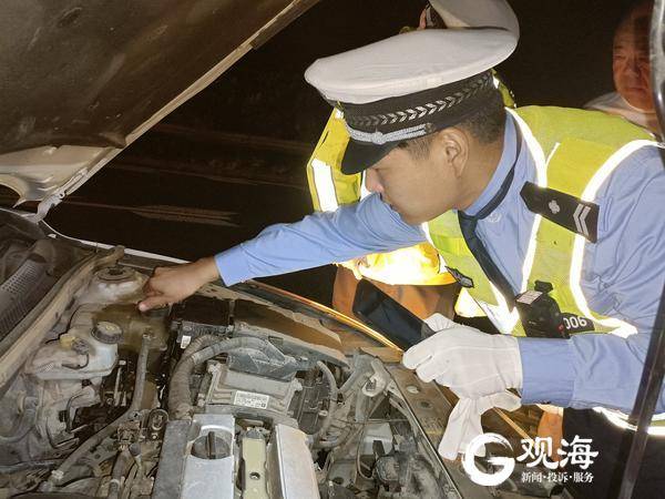 当晚,民警巡逻到沈海高速下行线636km+900米处,一辆轿车打着双闪停在应急车道上,民警下车前去查看,是车辆“开锅”了。王清军和李旭日、宋超拿出了早已准备好的那桶水对水箱进行降温。水温降下后,民警对车辆进一步检查,发现符合安全行车条件后,才放心地让司机继续上路行驶。