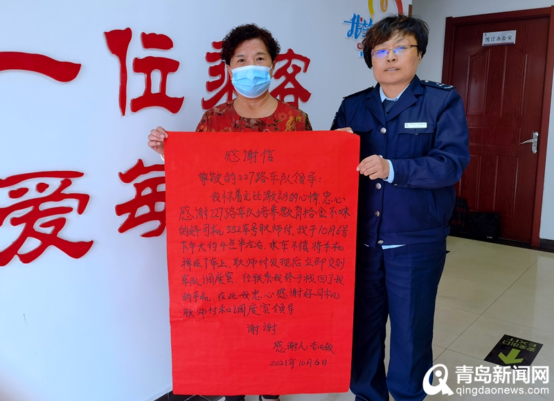 青岛新闻网10月8日讯(通讯员 陈玥嘉)10月8日上午,市民李女士专程赶到青岛城运控股公交集团崂山巴士二分公司,感谢暖心的公交人帮她找回了丢失的手机,并送上自己亲手书写的感谢信。