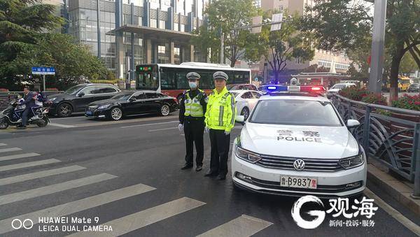 山东路与延吉路路口,是李涌曾经战斗过的岗位。这个路口是市南、市北的交会点,每分钟通行的车辆超过500辆,被称为“市北交警大队第一岗”。10月8日晚6时许,市北交警大队辽源路中队副中队长王武军在现场执勤。