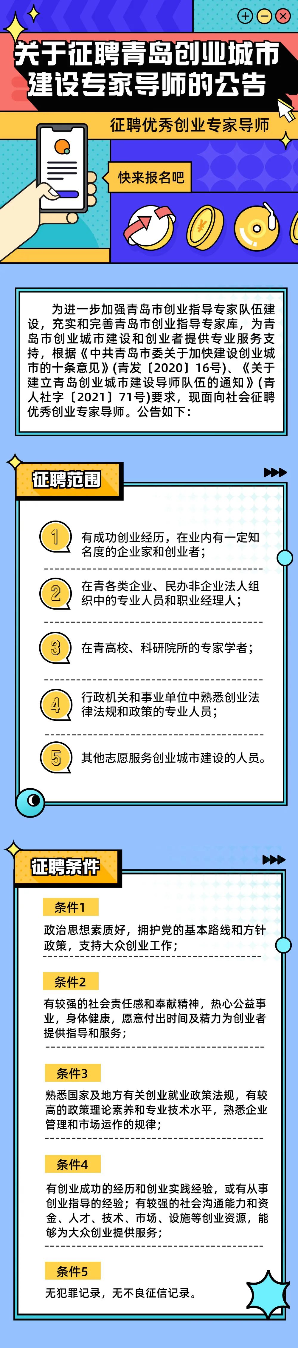青岛市面向社会征聘优秀创业专家导师,即日起开始报名