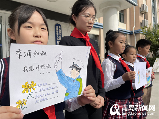 在李涌曾经开展交通安全授课的胶州市瑞华小学,老师和同学们深情回忆了李涌警官给他们带来的精彩的交通安全授课,同学们也精心制作了绘画作品,以此表达对英雄的怀念和致敬。“两年前,我刚上一年级的时候,李涌叔叔曾给我们上过一节安全课,他的教导一直提醒着我们安全出行记心间。”学生王睿瑶说。