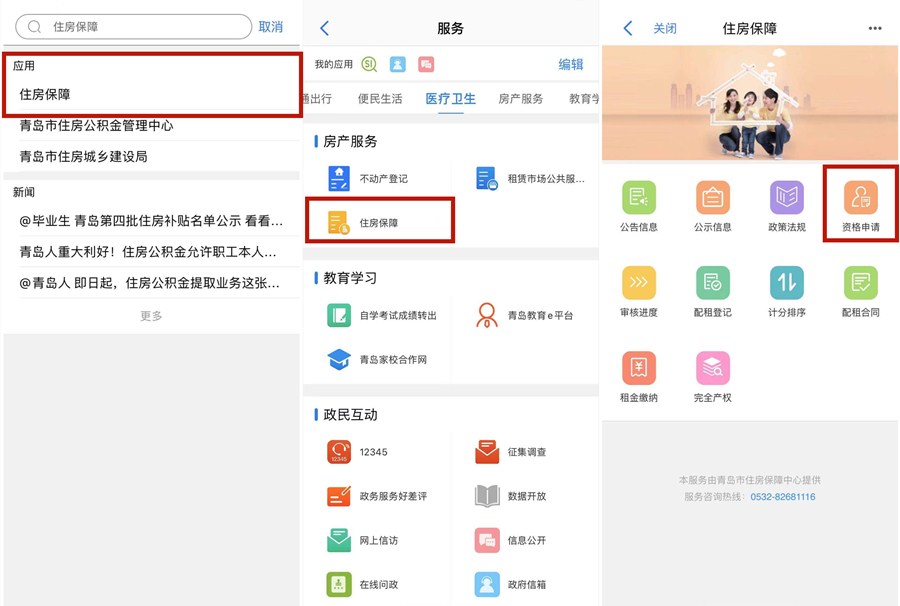 青岛新闻网12月20日讯 为加快解决城镇户籍低收入住房困难家庭、符合条件的新市民以及部分人才住房困难问题,方便有保障性住房需求的市民便利申请住房保障资格,提升服务效率,“爱山东·青e办”里整合接入了市住房保障管理局开发的“住房保障”便民应用,用户可以使用这款应用方便快捷的对多种住房保障业务实现掌上办理。