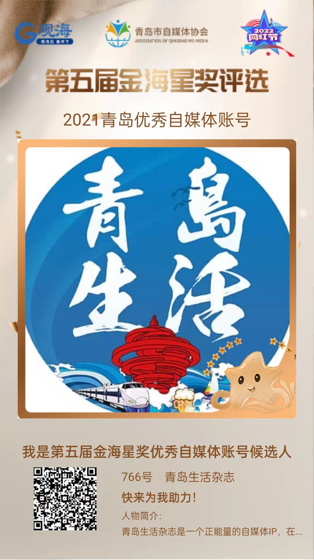 此外,青岛市自媒体协会第五届金海星奖优秀作品征集正在火热进行中,本次活动设置“优秀自媒体人物”“优秀自媒体账号”“优秀自媒体作品”“优秀自媒体传播案例”等奖项,欢迎报名。
