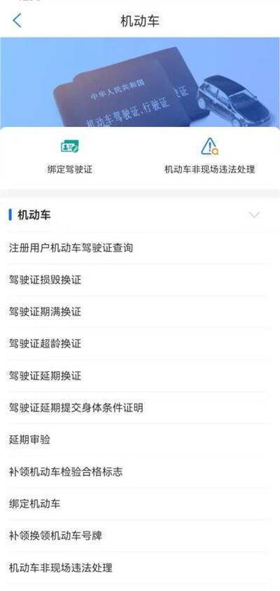 "爱山东"APP的【机动车】专区已上线的交管服务有:绑定驾驶证、机动车非现场违法处理、驾驶证损毁/期满/超龄/延期/换证、机动车罚款缴纳等,可一站式查询办理。同时,还可在【我的证照】中申领机动车行驶证,方便携带、更快出示!